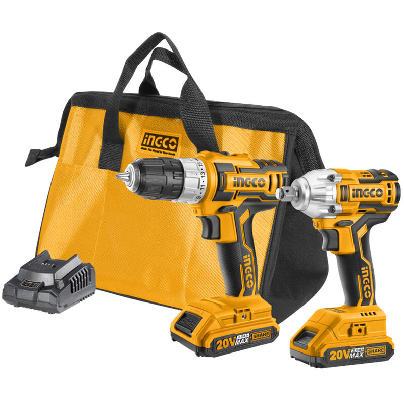 Il futuro degli elettroutensili si conosce bene, è a batteria. Quindi perchè non approfittare di questa fantastica offerta per acquistare questo kit della INGCO? Il kit contiene 2 elettroutensili a batteria (un trapano a percussione ed un avvitatore ad impulsi), 2 batterie al litio da 2.0 Ah, un caricatore rapido e 3 attacchi per trapano da 17,19 e 21 mm. Tutto fornito all'interno di un resistente borsone di tela. Il trapano eroga 22500 colpi per minuto e garantisce una foratura rapida ed efficiente su moltissime superfici, grazie alla sua forza battente ed al sistema a percussione. Dotato di 2 velocità meccaniche: alta velocità per forare su legno e metallo;