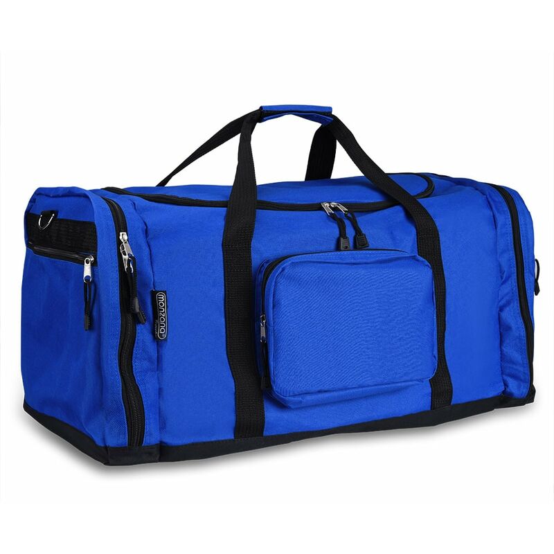 Puoi trasportare tutto ciò di cui hai bisogno in questa grande borsa sportiva/da viaggio! Sul lato sinistro e destro si trovano tasche esterne con 2 cerniere ciascuna per scarpe, zoccoli o simili. La tasca frontale offre spazio sufficiente per articoli da toeletta o altri piccoli oggetti che devono stare nella borsa. La tracolla con spallina e 2 robusti moschettoni è rimovibile e regolabile. Le borse molto caricate possono essere semplicemente portate a spalla. I due supporti della borsa sono stabili e possono essere collegati tramite velcro. Il fondo esterno della borsa è dotato di piccoli piedini di supporto come protezione dal materiale e dallo sporco. Disponibile nei colori giallo, nero e blu. Vantaggi del prodotto: * 1 ampio scomparto principale con apertura a U e 2 cerniere * 1 tasca frontale con cerniera * 2 grandi tasche laterali/tasche per scarpe con 2 cerniere ciascuna * 1 tasca laterale aggiuntiva con cerniera * Ogni cerniera con traccia * Supporto stabile con velcro *