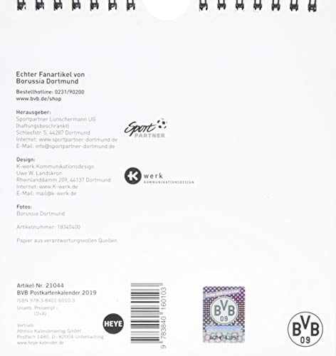 Borussia Dortmund 2019 Postkartenkalender: Sammelkartenkalender