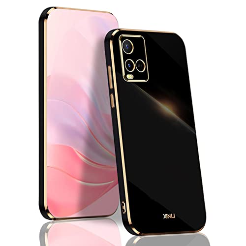 BORYA Cover per Vivo Y21/Vivo Y21s/Vivo Y33s, Ultra Sottile Antiurto Morbida Silicone TPU Bumper Custodia, Elegante Placcatura Phnom Penh Lusso Leggero Anticaduta Case, Nero