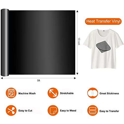 BOSADA Pellicola termoadesiva in vinile per trasferimento termico, 30,5 x 1,5 m, per abbigliamento fai da te, logo, cappello, tessuto (nero)