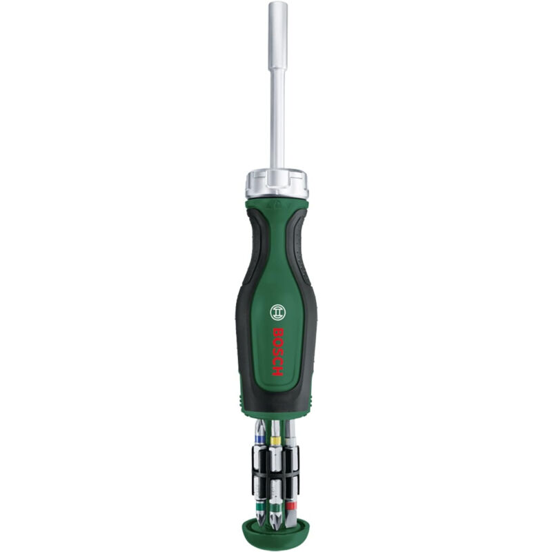 Funzione de cricchetto con ingranaggio fine de 36 denti per una robusta de 36-70 Nm.. Cacciavite stabile con albero da 80 mm e portabit magnetico. Design ergonomico e impugnatura morbida per un controllo completo, forza e comfort ottimali. Anello metallico intuitivo de per il posizionamento della mano destra e sinistra e per la regolazione manuale del centro. Punte di alta qualità e varie dimensioni amano in 12 caricatori di punte de.
