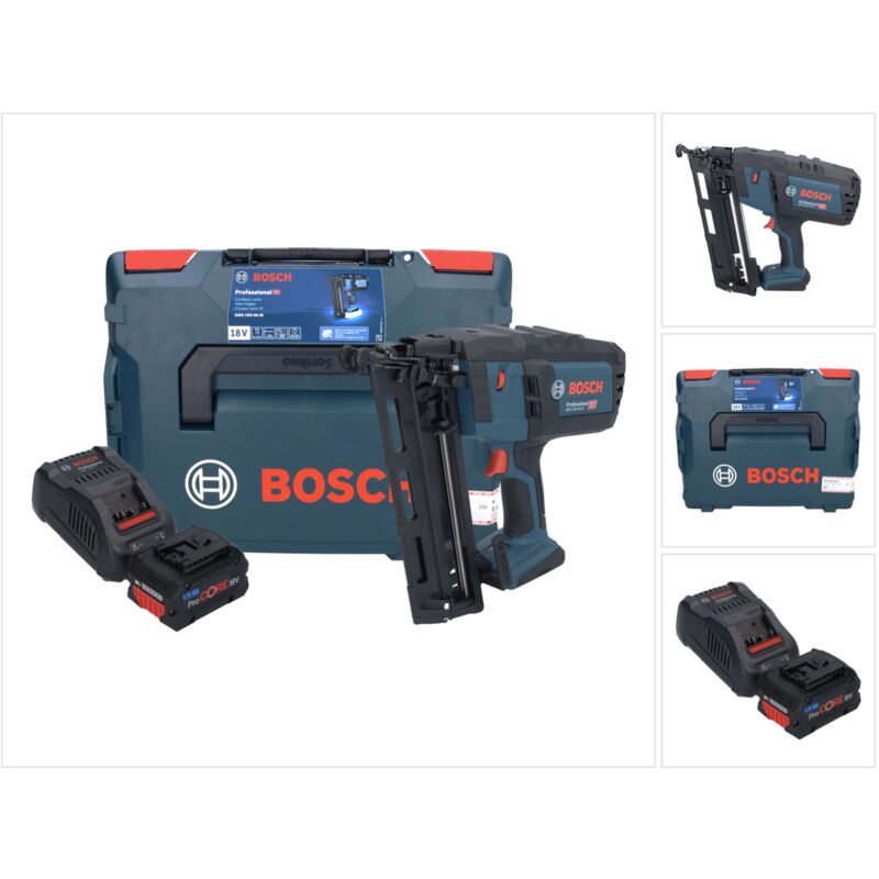 Contenuto della consegna: - 1x Chiodatrice a batteria Bosch GNH 18V-64 M - 1 batteria professionale Bosch ProCORE 18 V 5,5 Ah ( 1600A02149 ) - 1x Batteria Bosch Schnellladegert GAL 1880 CV ( 1600A00B8G ) - 1x L-BOXX Descrizione del prodotto: La Bosch Professional GNH 18V-64 M è una potente chiodatrice a testa rovesciata di alta qualità per un fissaggio rapido e preciso. Con una tensione della batteria di 18 V, un angolo di caricamento di 20, una lunghezza del chiodo di 1,6 mm e una dimensione del chiodo da 32 a 64 mm, è adatta a molte applicazioni diverse. Il colpo singolo e il colpo a contatto facilitano il tiro e aumentano la precisione. Il blocco del tiro a secco quando il caricatore dei chiodi è vuoto garantisce una maggiore protezione del legno. Il GNH 18V-64 M è leggero, pesa solo 2,9 kg e non necessita di tubo dell'aria, compressore o cartuccia di gas. Con un valore di emissione di vibrazioni di 2,5 m/s e un livello di potenza sonora di 95 dB(A), il GNH 18V-64 M è una