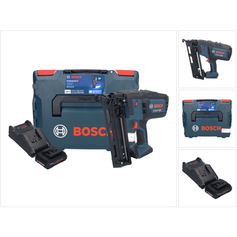 Contenuto della consegna: - 1x Chiodatrice a batteria Bosch GNH 18V-64 M - 1 batteria Bosch GBA 18 V 4,0 Ah ProCORE ( 1600A016GB ) - 1x caricabatterie Bosch GAL 18V-40 ( 1600A019RJ ) - 1x L-BOXX Descrizione del prodotto: La Bosch Professional GNH 18V-64 M è una potente chiodatrice a testa rovesciata di alta qualità per un fissaggio rapido e preciso. Con una tensione della batteria di 18 V, un angolo di caricamento di 20, una lunghezza del chiodo di 1,6 mm e una dimensione del chiodo da 32 a 64 mm, è adatta a molte applicazioni diverse. Il colpo singolo e il colpo a contatto facilitano il tiro e aumentano la precisione. Il blocco del tiro a secco quando il caricatore dei chiodi è vuoto garantisce una maggiore protezione del legno. Il GNH 18V-64 M è leggero, pesa solo 2,9 kg e non necessita di tubo dell'aria, compressore o cartuccia di gas. Con un valore di emissione di vibrazioni di 2,5 m/s e un livello di potenza sonora di 95 dB(A), il GNH 18V-64 M è una soluzione comoda ed