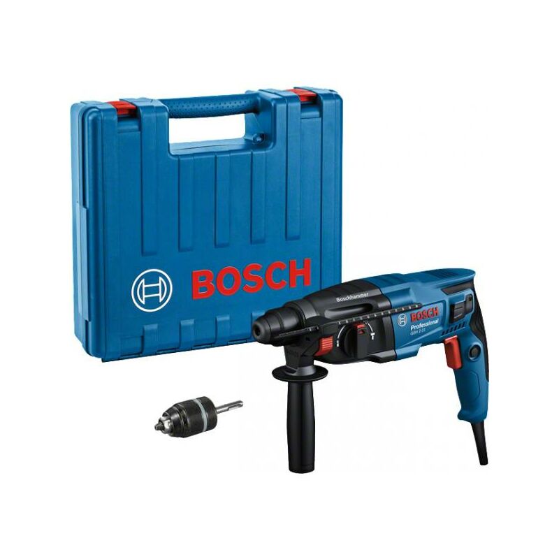 Peso 2,3 kg Larghezza 88 mm Profondità 334 mm Altezza 205 mm Alimentazione AC Potenza ingresso 720 W Custodia per il trasporto Sì Impugnatura supplementare Sì Diametro di foratura nel calcestruzzo (massimo) 2,1 cm Potenza del colpo (max) 2 J Numero di colpi 4800 bpm Campo di applicazione ottimale nel calcestruzzo 4 - 10 mm Livello di vibrazione (foratura a martello) 14,7 m/s² Incertezza del livello di vibrazione (foratura a martello) 1,5 m/s² Livello di vibrazione (scalpellatura) 11,9 m/s² Incertezza del livello di vibrazione (scalpellatura) 1,5 m/s² Perforazione Sì Impatto di trapanatura Sì Cesellatura Sì Tipo di mandrino SDS-plus Colore del prodotto Nero, Blu, Rosso Arresto di profondità Sì