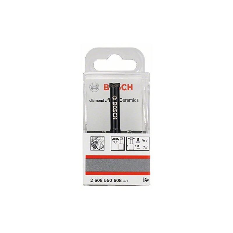 Professionale editing di morbido da parete molto dure fino alle piastrelle del pavimento come gres porcellanato Diametro x Lunghezza di lavoro: 8 x 35 mm Adatto per tutti i trapani batteria con attacco rotondo pecora tbohrer Con bordi diamantbeschichteten, taglio sottile per un veloce, tagli puliti e lunga durata. Lavorare solo con batteria trapani e senza percussione. Raffreddamento ad acqua sempre con viti. Bosch 2608550608 - Fioretto diamantato 8 mm