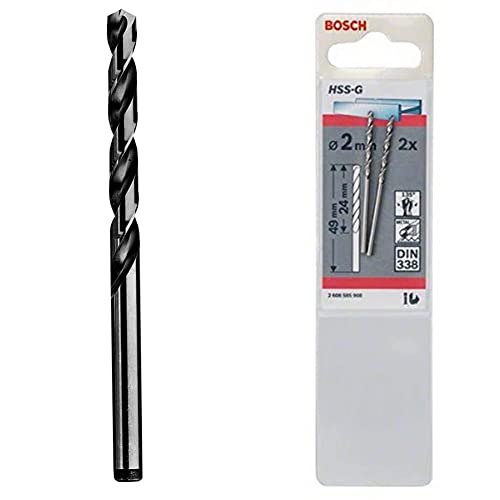 Bosch 2608585927 Punte per metallo HSS-G Standard, 6,5 x 63 x 101 mm, 1 pezzo & Pro Punta per Metallo HSS-G, Levigata (2 Pezzi, Ø 2 mm)