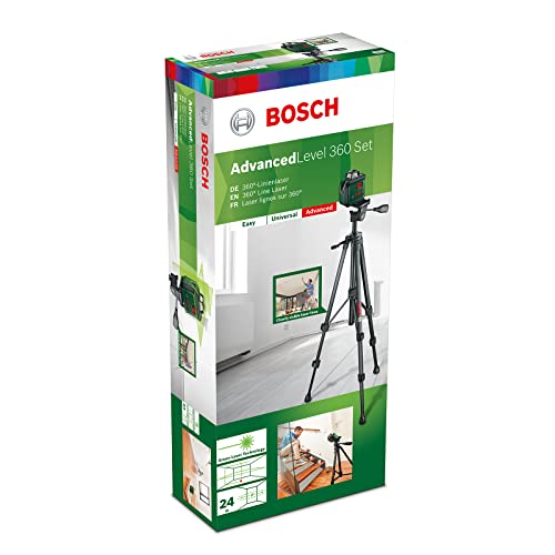 Bosch AdvancedLevel 360 Livella Laser Verde, Treppiede, Raggio d'Azione fino a 24 m & Supporto Universale MM 3, Dimensione di Serraggio 3-70 mm, Regolazione Altezza Fino a 60 mm