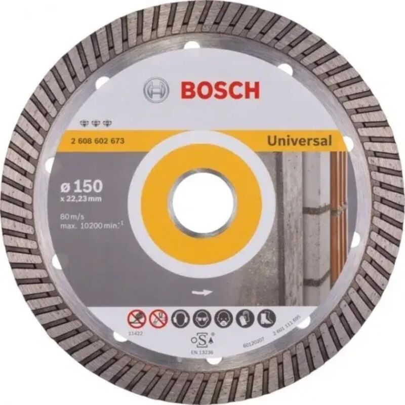Il disco diamantato per smerigliatrice Bosch Best for Universal Turbo è un accessorio da taglio della serie Professional, indicato per smerigliatrici angolari con foro 22,23 mm.Questi dischi diamantati presentano matrice ottimizzata per tagli veloci a corona continua, con forma del segmento studiata per tagli universali e finiture precise e pulite su ogni genere di materiale da costruzione, senza scheggiature o rotture del prodotto lavorato.Il disco diamantato per smerigliatrice Bosch Best for Universal Turbo è indicato per eseguire tagli veloci su calcestruzzo, calcestruzzo armato, mattone, blocchi di pietra ed arenaria, calcare e pietra dura. Tipologia: Disco diamantato Serie: Professional Tipo di lama: Corona continua Turbo Diametro: 115 - 230 mm Foro: 22,23 mm Spessore dente: 2,2 - 2,5 mm Tipo di macchina: Smerigliatrici angolari Altezza segmento: 12 - 15 mm Pezzi per confezione: 1 Utilizzo: Materiali da costruzione
