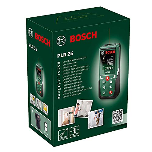 Bosch distanziometro laser PLR 25 (misura distanze fino a 25 m con precisione, funzioni di misurazione, funzione di memorizzazione)