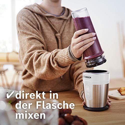 Bosch Elettrodomestici VitaStyle Mixx2Go Mini Frullatore, 350 W, 12 Unknown_Modifier, 0 Decibel, Vetro, 2 velocità, Nero