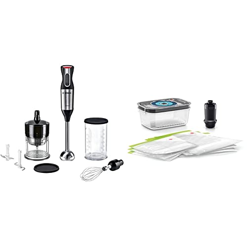 Bosch ErgoMixx Style Hand Blender Frullatore a Immersione Portatile in Acciaio Inox, 1000 W & MSZV6FS1 Set Accessori Sottovuoti, con FreshVacuum