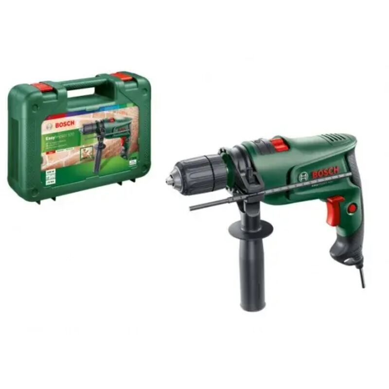 Il trapano a percussione EasyImpact 630 Bosch 0603133100 è un utensile a corrente ideale per forare con precisione in svariati materiali.Questo trapano battente della linea Bosch Hobby è perfetto per lavori non gravosi di foratura su legno, muratura, calcestruzzo o metallo. Il potente motore di cui è dotato eroga potenza pari a 630 W, garantendo una velocità a vuoto fino a 3000 giri e 48000 colpi al minuto. Estremamente leggero e maneggevole, questo elettroutensile risulta versatile ed utilizzabile anche per lavori sopra testa.Il trapano a percussione EasyImpact 630 Bosch 0603133100 è fornito con impugnatura supplementare, asta di profondità e valigetta. Tipologia: Trapano battente Alimentazione: Corrente Potenza: 630 W Serie: Bosch Hobby Capacità: Legno 25 mm, Muratura 12 mm, Acciaio 10 mm Colpi al minuto: 48000 colpi/min Velocità a vuoto: 0 - 3000 giri/min Coppia di serraggio: 15 Nm N. velocità: 1 Mandrino: Autoserrante Capacità mandrino: 2 - 13 mm Percussione: Sì