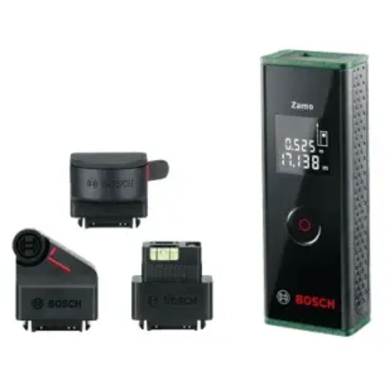 Il distanziometro laser digitale Zamo Set Bosch 0603672703 è un pratico strumento di misurazione per i vostri progetti di fai da te. La tecnologia a laser garantisce il massimo della precisione durante la misurazione, effettuabile semplicemente premendo un unico pulsante per rilevare dati fino a 20 m e calcolare aree.Questo utensile può essere utilizzato per calcolare aree per applicare carta da parati o vernici in giuste quantità, misurare mobili, pareti, scaffalature o appendere quadri. Sono disponibili numerosi accessori per rispondere alle varie necessità di misurazione. Il distanziometro laser digitale Zamo Set Bosch 0603672703 è fornito con adattatore a nastro, adattatore a rotella, adattatore a linee e due batterie (AAA) LR03 da 1,5 V. Tipologia: Distanziometro laser Alimentazione: Batteria Potenza: 1,5 V Tipologia di batteria: Stilo Diodo laser: 635 nm Classe laser: 2 Campo di misura: 0,15 - 20,00 m Precisione di misura: ± 3,0 mm Tempo di misura: 0,5 s Tempo di