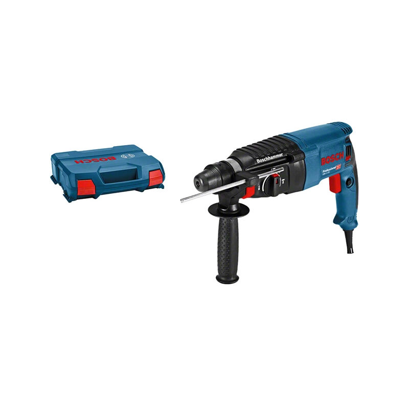 Martello perforatore SDS-plus polivalente e performante per l'uso quotidiano Consegnato in una scatola con: Limitatore di profondità 210 mm Impugnatura supplementare Panno per la macchina Raggiunge una potenza del colpo pari a 2,7 Joule, per una foratura rapida ed elevata capacità di asportazione dello scalpello I componenti di alta qualità del martello perforatore garantiscono robustezza, affidabilità e lunga durata La modalità di scalpellatura opzionale ne consente l'uso in una vasta gamma di applicazioni Giunto sferico alla base del cavo (prevenzione di rotture) Stessa potenza nella rotazione a destra e a sinistra Frizione di sicurezza per la protezione dell'utente e della macchina Reversibilità destra/sinistra per sbloccare punte incastrate Controllo progressivo della velocità per una perfetta apertura della foratura Pulsante di bloccaggio per un funzionamento continuo senza fatica Modello GBH 2-26 Potenza assorbita nominale 830W Numero di colpi a numero di giri nominale 0 - 4.000