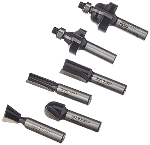 Bosch Set da 6 Pezzi di frese in metallo duro, per legno, Ø codolo 8 mm, accessorio fresatrice verticale