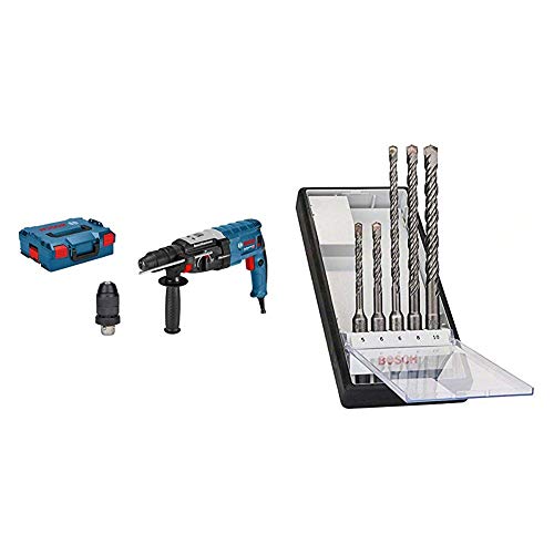 Bosch Professional GBH 2-28 F Martello Perforatore, 880 Watt, SDS-Plus, Foro Calcestruzzo 4 - 28 mm, in Valigetta L-Boxx & Robust Line - Set punte per trapano SDS plus, 5 pezzi