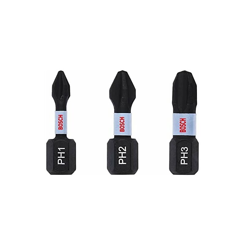 Ben equipaggiato: il puntale Impact Control è molto robusto e ideale per un uso intensivo Lunga durata: la speciale zona di torsione garantisce un'estrema durata sotto carico prolungato Sistema Pick and Click: aggancia in modo sicuro i fasci di punte negli slot a scatto o premi semplicemente la linguetta di rilascio per rimuoverli e sostituirli Compatibilità: le punte per cacciavite Impact Control sono adatte per l'uso sia con avvitatori a percussione che trapani Fornitura: 3 punte per cacciavite professionali Bosch PH - PH1, PH2, PH3, lunghezza 25 mm, gambo esagonale