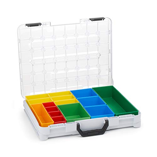 Contenuto della confezione: nella confezione si trova il T-BOXX grigio con set di contenitori T3 (4 x A3 rosso, 5 x B3 giallo, 3 x C3 blu, 1 x D3 verde, 1 x F3 arancione, 1 x G3 verde scuro). Peso: 1,6 kg, dimensioni 440 x 350 x 80 (mm) accessori disponibili nel nostro negozio