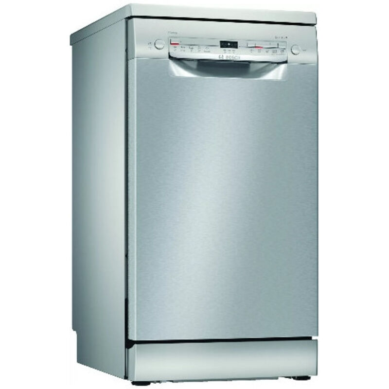 Bosch SPS2IKI04E. Tipo of installazione: Freestanding, Dimensione of del prodotto: Narrow (45 cm), Colore of della porta: Stainless steel. Numero of posate: 9 posate, Emissione class of rumore: C, Livello di rumore of: 48 dB. Classe de efficienza de energia: F, Consumo de acqua por ciclode lavaggio: 9,5 L, Consumode energiapor 100 cicli: 78 kWh. Larghezza: 450 mm, Profondità: 600 mm, Altezza: 845 mm