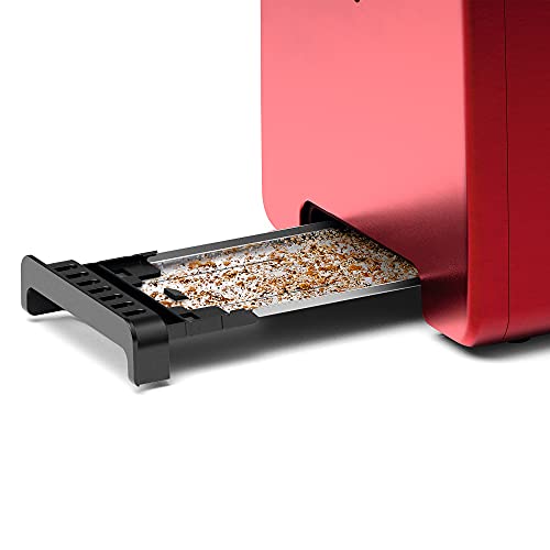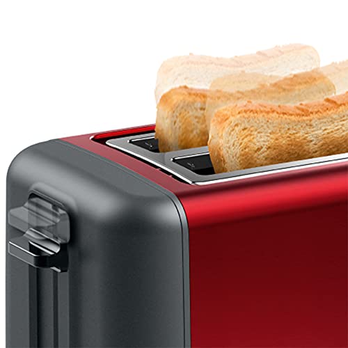 Bosch TAT4P424DE - Tostapane compatto DesignLine in acciaio INOX, con funzione di scongelamento, perfetto per 2 fette di tostapane e funzione lifting, largo, 970 W, colore: rosso
