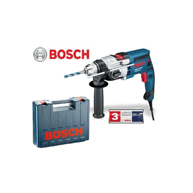 TRAPANO A PERCUSSIONE BOSCH GSB 19-2 RE Vantaggi: GSB 19-2 RE Professional Il più veloce e versatile della sua categoria Potente trapano con percussione a 2 velocità (850 W), per un rapido avanzamento del lavoro Robusta carcassa ingranaggi in metallo per una lunga durata Frizione meccanica di sicurezza - Antirotazione per un'elevata sicurezza di lavoro Mandrino autoserrante ad una boccola, con Auto-Lock per un rapido cambio utensile con una sola mano Spazzole poste su piastra girevole per massima potenza in entrambi i sensi di rotazione Nuova impugnatura di sicurezza con innovativo fissaggio, per una presa sicura dell'utensile Attacco sferico per un ampio raggio d'azione e per evitare rotture del cavo Preselezione del numero di giri con rotellina di regolazione per lavorare in diversi materiali Softgrip per una presa più sicura e confortevole Ø collare 43 mm (norma europea), utilizzabile anche con supporto a colonna Dati tecnici: GSB 19-2 RE Professional Potenza 850 W Numero di giri a