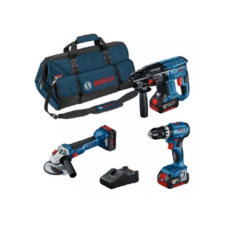 KIT GBH 18V-21 + GWS 18V-10 + Kit da 3 utensili: GSB + GWS + GBH + 2 batterie GBA 18V 5.0Ah + PC 18V 5.5Ah + caricabatteria GAL Il kit 3 utensili Brushless 18 V con batterie 0615990N29 Bosch Professional è un pratico e completo set, ideale per rispondere a tutte le necessità dei professionisti. Questi elettroutensili professionali sono dotati di motore Brushless alimentato da batterie da 18 V per garantire un'eccezionale durata senza richiedere particolare manutenzione, offrendo la comodità degli utensili a batteria con prestazioni paragonabili agli utensili a filo Bosch. Questo set comprende un trapano a percussione GSB 18V-45, un tassellatore GBH 18V-21 e una smerigliatrice angolare GWS 18V-10, perfetti per eseguire un'ampia gamma di operazioni nell'ambito dell'edilizia, carpenteria, industria o montaggio. Per completare il set, in dotazione vengono forniti anche il caricabatterie e tre batterie, due GBA da 5,0 Ah ed una ProCORE da 5,5 Ah per alimentare sin da subito i propri