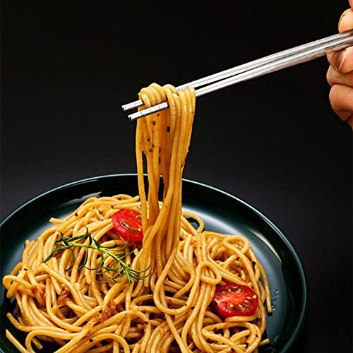 ☑️ Lavabile in lavastoviglie e facile da pulire: il materiale sicuro 304 può essere lavato con altri piatti senza distinzioni. Le bacchette in metallo sono comunemente utilizzate per pranzare e cucinare. L'uso a lungo termine non si consuma. Le bacchette sono di media lunghezza (23,5 cm). Quando non vuoi usare bacchette usa e getta, puoi