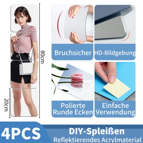 Bosdontek 4 Pezzi Specchio Adesivo, 20 X 20 cm Specchio da Parete Flessibile Specchi Adesivi da Parete in Acrilico, Specchio da Parete Adesivo per Decorazioni Armadio, Muro, Casa