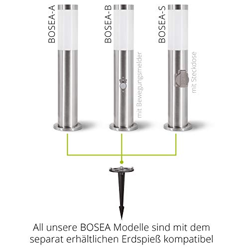 BOSEA - Lampada da vialetto, effetto dissuasivo, 50 cm, per E27, in acciaio inox, IP44