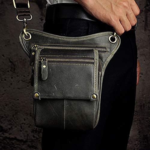 Boshiho da Uomo in Vera Pelle Marsupio Cintura Drop Leg, Borsa a Tracolla, Grigio