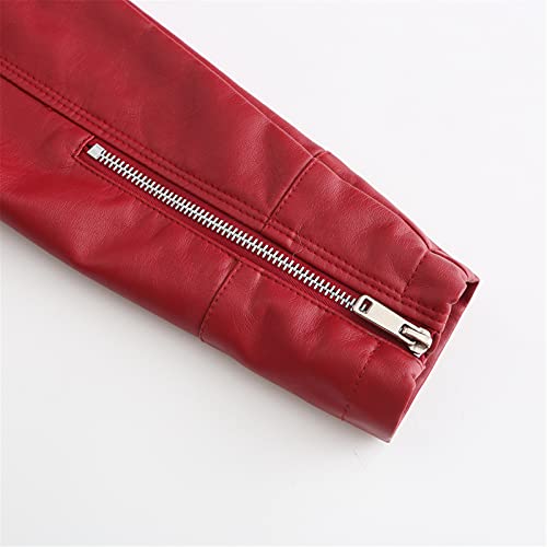 Boshivw Giacca in pelle da donna, nera, corta, in ecopelle, con colletto alto, antivento, giacca da motociclista, giacca per il tempo libero, in stile vintage, casual, Colore: rosso, M