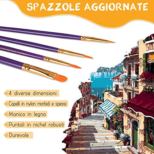 SPAZZOLE IDEALI - Il nostro kit per pittura per adulti contiene 4 spazzole in nylon altamente resistenti di diverse dimensioni per aiutarti a dipingere più facilmente aree grandi o piccole. Il manico in legno rende il controllo più facile, le robuste ghiere in nichel fanno sì che le setole non si perdano e si biforcano, i pennelli durevoli ti aiuteranno a dipingere più agevolmente.