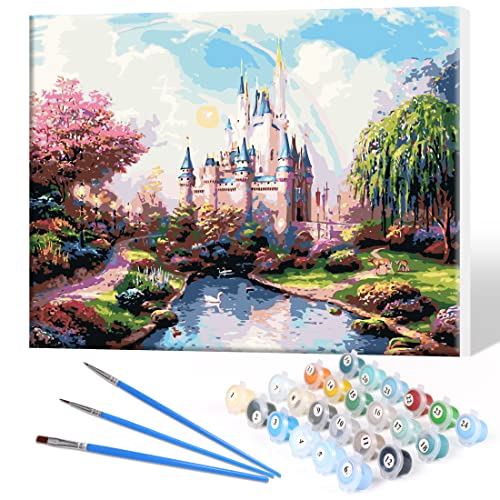 BOSHUN Struttura in Legno Dipingere con i Numeri Kit con pennelli e pigmento Acrilico - Castello dei Sogni (40 x 50cm)