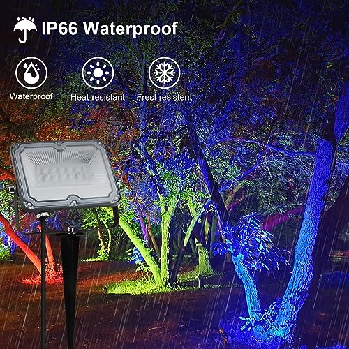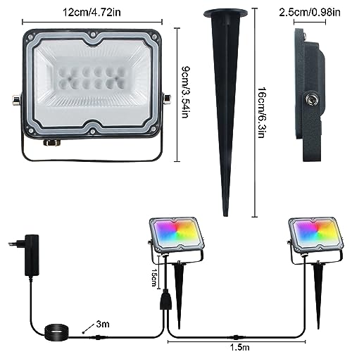 BOSITE Faretto LED RGB Esterno, 10W Faro LED RGB, IP66 Impermeabile Faretti da Giardino RGB, 16 Milioni Colori, Timer, LED Faretto Colori per Cortile Prato Piscina Vacanze Feste- 2 Pezzi