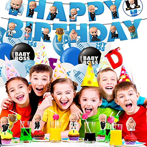 Boss Compleanno Decorazioni 34 Pezzi,Kit Festa Boss,Palloncini Compleanno Boss,Boss Feste Compleanno,Compleanno Striscioni,Cake Topper,per Compleanno Feste a Tema Bambini