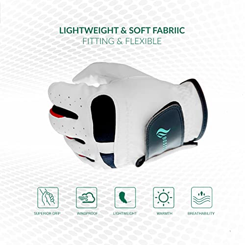 BOSSER Guanti da Golf Uomo in Pelle e Spandex per Mano Sinistra/Destra (Giocatore Sinistrorso/Destrorso), Ergonomici (Bianco, S, Destrorso)