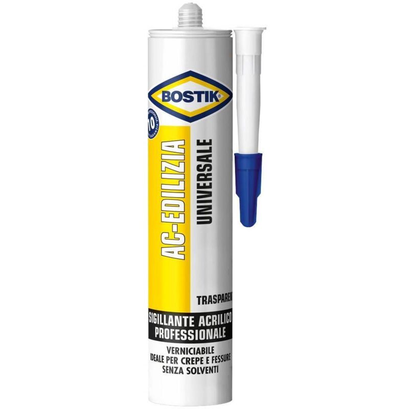 Per sigillature di crepe e fessure. Verniciabile, resistente alla muffa. Senza solventi. Adatto per ogni tipo di sigillatura su superfici porose e non porose. Elasticità garantita 10 anni. Cartuccia da 300 ml trasparente