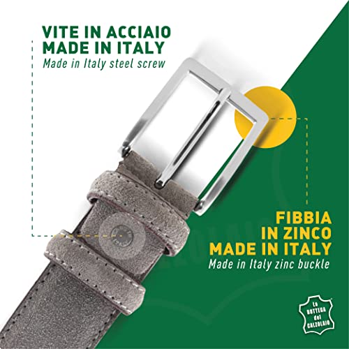 La Bottega del Calzolaio Cintura uomo in pelle scamosciata tortora, artigianale, made in italy, 3,5 cm. (105 cm (40/42 EU))