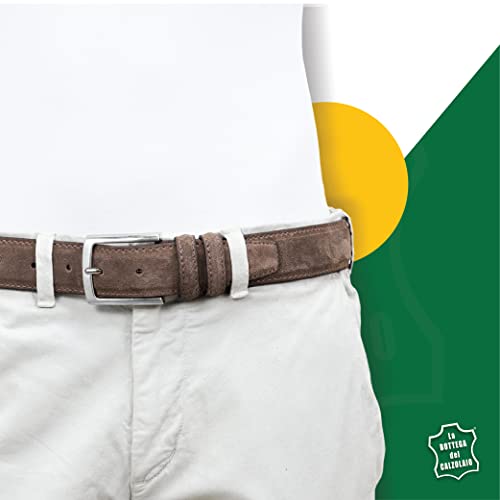 La Bottega del Calzolaio Cintura uomo in pelle scamosciata marrone, artigianale, made in italy, 3,5 cm. (130 cm (56/58 EU))