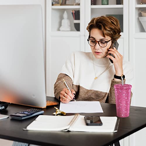 Bottiglia di acqua con brillantini con coperchio, in acciaio inox, con cannuccia termica, con strass, con 1 pennello per tazza, 6 pennelli per donne e ragazze, colore: rosa