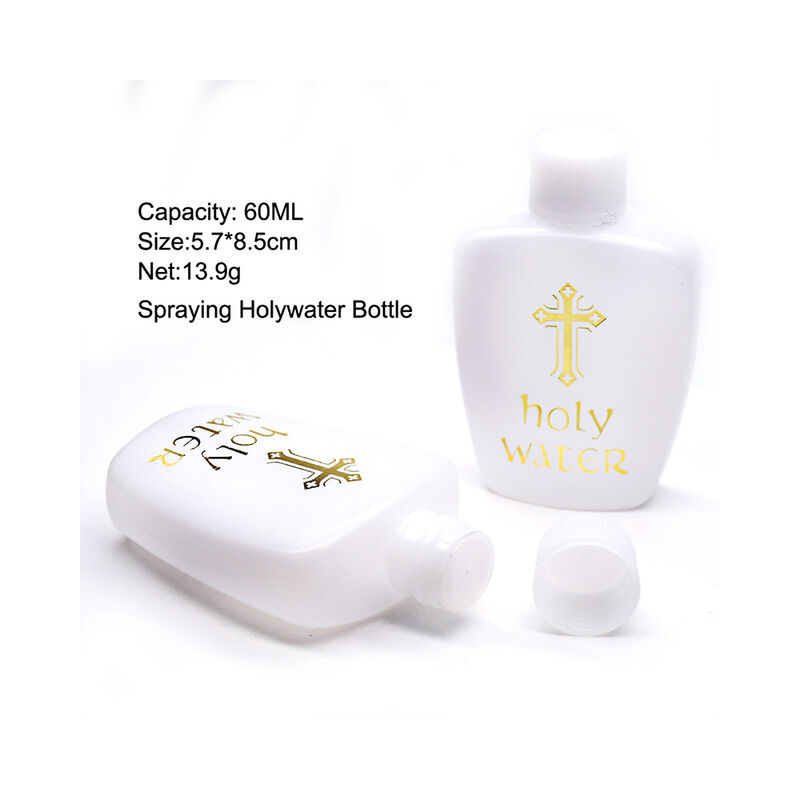 Bottiglia di acqua santa da 250ml contenitore di acqua santa in plastica riutilizzabile con croce d&39oro con coperchio a vite forniture per chiesa per feste di pasqua cristiana,1pc 60ml