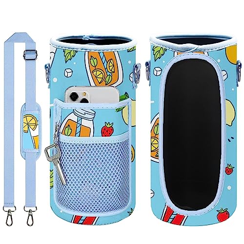 ✅Viaggiare con facilità - Custodia per bottiglia d'acqua con 2 scomparti separati, cinghie staccabili e regolabili e portachiavi, il telefono, le carte, le chiavi, ecc. hanno il loro posto fisso. Non solo protegge la bottiglia, ma libera anche le mani, porta con te uno zaino per bottiglia d'acqua e viaggia con facilità!