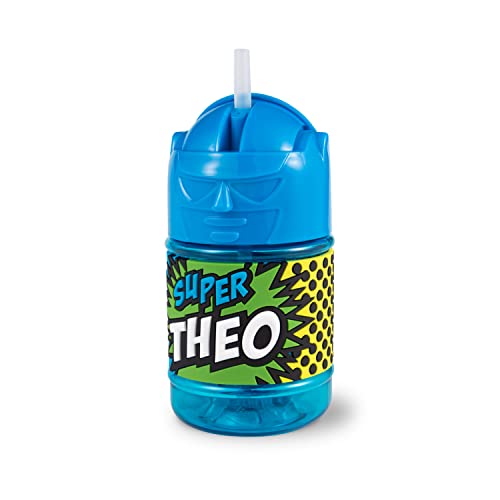 Supereroe personalizzato bottiglia per bambini con cannuccia e sigillo anti-fuoriuscita.