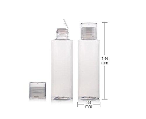 Bottiglia di plastica (vuota) riutilizzabile da 100 ml, con riduttore del collo e tappo a vite, per lozioni, gel doccia, shampoo, olii essenziali;