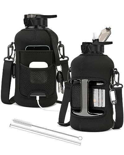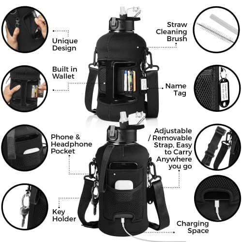 Bottiglia sportiva da 2,2 litri con cannuccia e borsetta, grande bottiglia d'acqua da 74 oz per palestra, custodia di stoccaggio, spillo per cellulare, bottiglia d'acqua