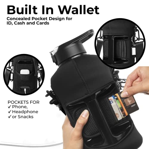 Bottiglia d'acqua all-in-one: questa bottiglia d'acqua all-in-one ha tutto ciò che puoi immaginare, da un portafoglio integrato a tasche per cellulare, auricolari, piccoli snack, portachiavi, portanome, tracolla rimovibile/regolabile, bevanda. paglia, spazzola per la pulizia... lo chiami, ce l'abbiamo. La nostra bottiglia d'acqua unica nel suo genere con manico e cannuccia è la soluzione per riporre il telefono, gli auricolari, la carta di credito e tutto ciò a cui puoi pensare mantenendo un'idratazione tutto il giorno.