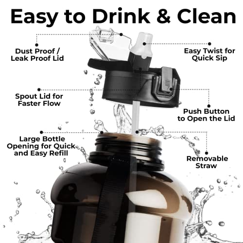 La spazzola per la pulizia della paglia e la tracolla premium sono inclusi! La tracolla rimovibile/regolabile consente di trasportare la bottiglia a mani libere, la maniglia sulla bottiglia facilita la presa e il gancio sul tappo della bottiglia è un altro modo per trasportare la bottiglia. Il tappo antipolvere e a prova di perdite garantisce una bottiglia d'acqua più pulita e igienica. Una lunga spazzola per la pulizia della bottiglia consente di pulire facilmente la bottiglia d'acqua.