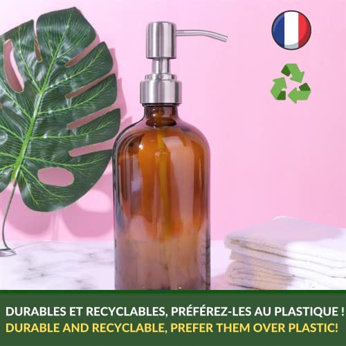 ✨ FORZA ED ELEGANZA: Il colore ambrato darà un tocco molto chic alla tua cucina o al tuo bagno. Composte da materiali nobili, queste bottiglie si distinguono dalle bottiglie di plastica per la loro durata ed estetica. Il vetro è molto resistente e non si rompe facilmente. I tappi in acciaio garantiscono la resistenza all'usura e alla manipolazione e facilitano il pompaggio, cosa diversa dai tappi in plastica.