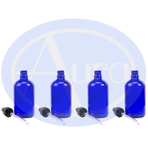Bottiglie 100ml in vetro blu con pipetta in vetro - Confezione da 4 Per la conservazione di oli essenziali / prodotti per aromaterapia